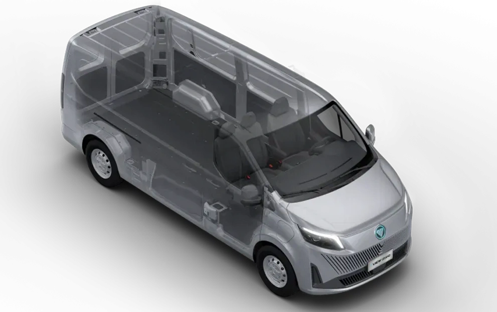 A versão de carga é adequada para transportar mercadorias de até 6,8m3 até 7,9m3. Nova geração de baterias de 77 KWh com maior armazenamento de energia, menor peso, carregamento DC mais rápido.